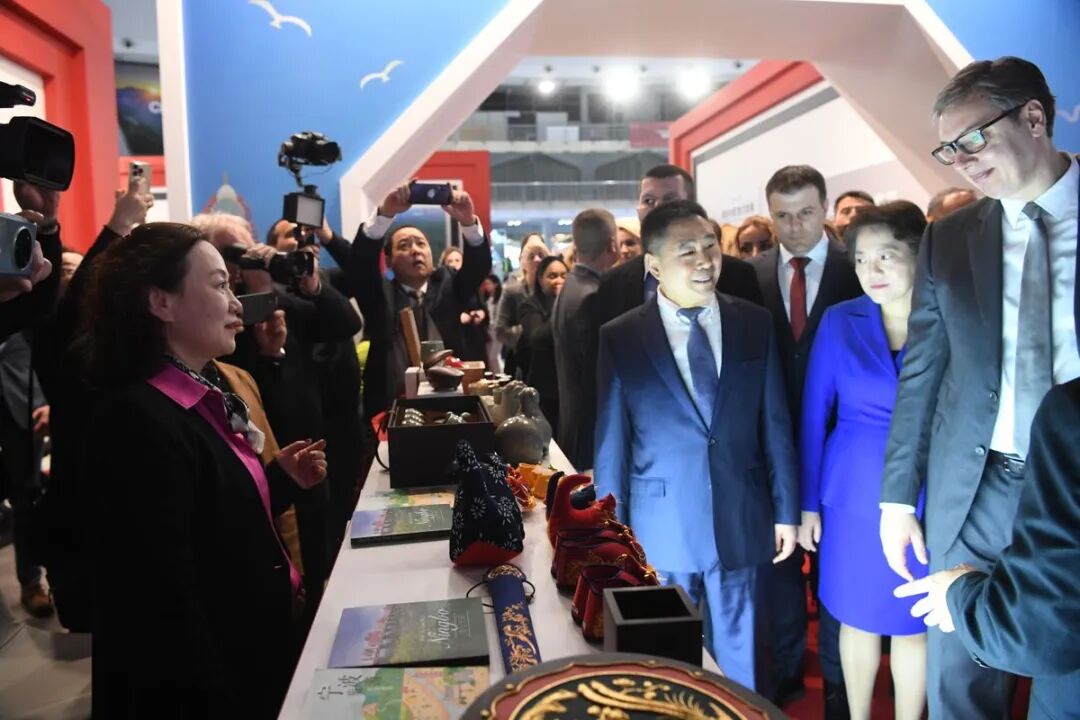开幕式后,武契奇等参观了中国展台,听取中方代表团的详细介绍,欣赏民乐演奏等中国文化展示。