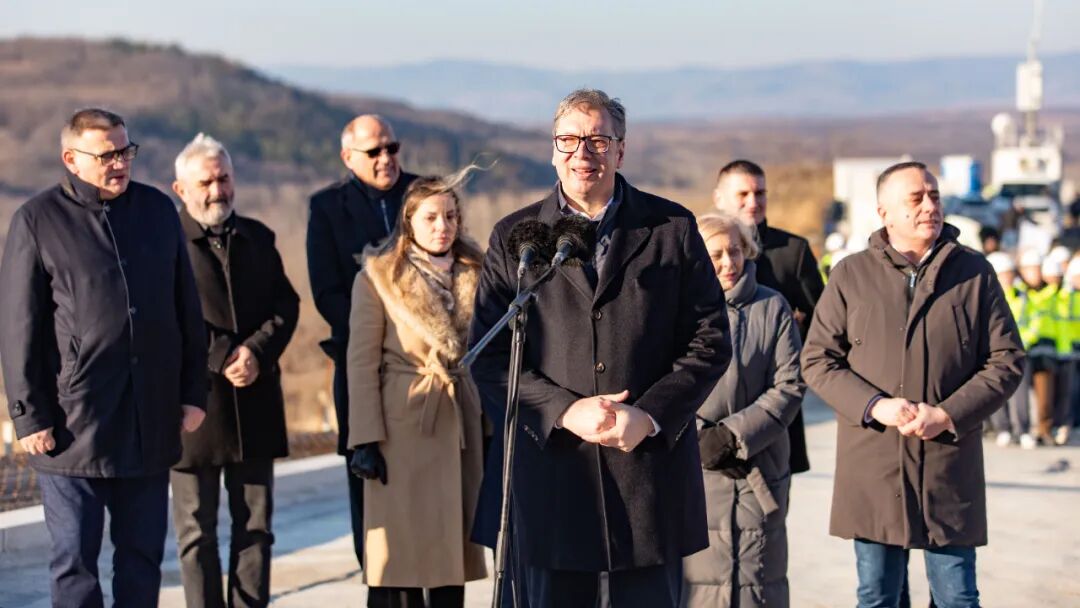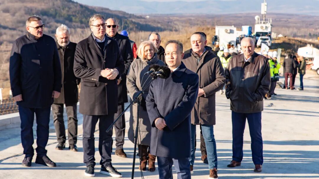12月29日,塞尔维亚总统武契奇视察中国企业承建的多瑙走廊(波扎雷瓦茨—戈卢巴茨)快速路项目,中国驻塞尔维亚大使李明,塞建设、交通和基础设施部长索夫罗尼耶维奇,波扎雷瓦茨市长帕夫洛维奇等陪同。